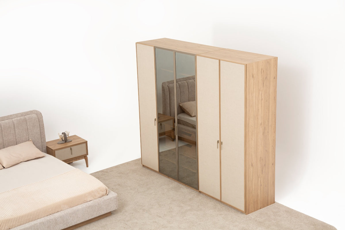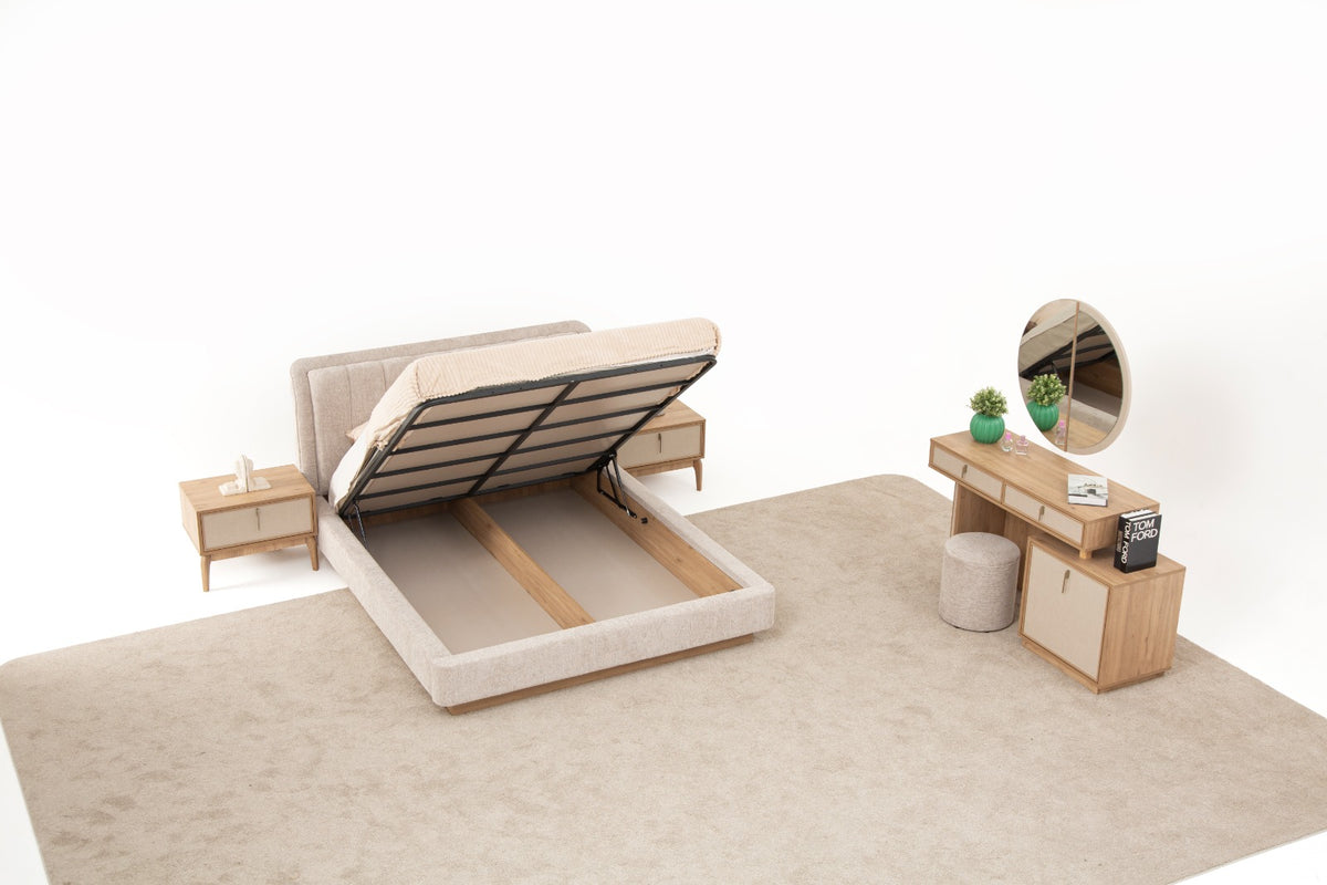 1 Adet Gardırop, 1 Adet Bazasız Karyola ve Başlığı, 1 Adet Şifonyer ve Aynası, 2 Adet Komodin ve 1 Adet Puftan oluşmaktadır.