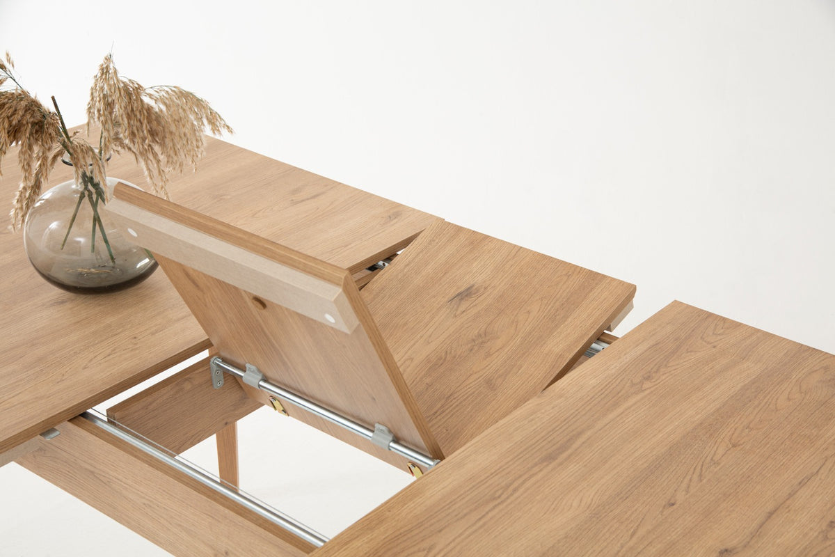 Ahşap malzeme ile üretilmiştir. Masa açılıp uzama özelliğine sahiptir.
